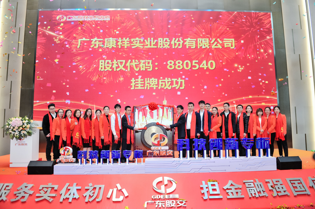 2021年3月23日上午,伴隨著響亮的敲鑼聲,廣東康祥實(shí)業(yè)股份有限公司(股權(quán)代碼:880540)在廣東股權(quán)交易中心標(biāo)準(zhǔn)板成功掛牌,標(biāo)志著廣東康祥在深耕行業(yè)同時(shí),正式進(jìn)入資本市場(chǎng)!